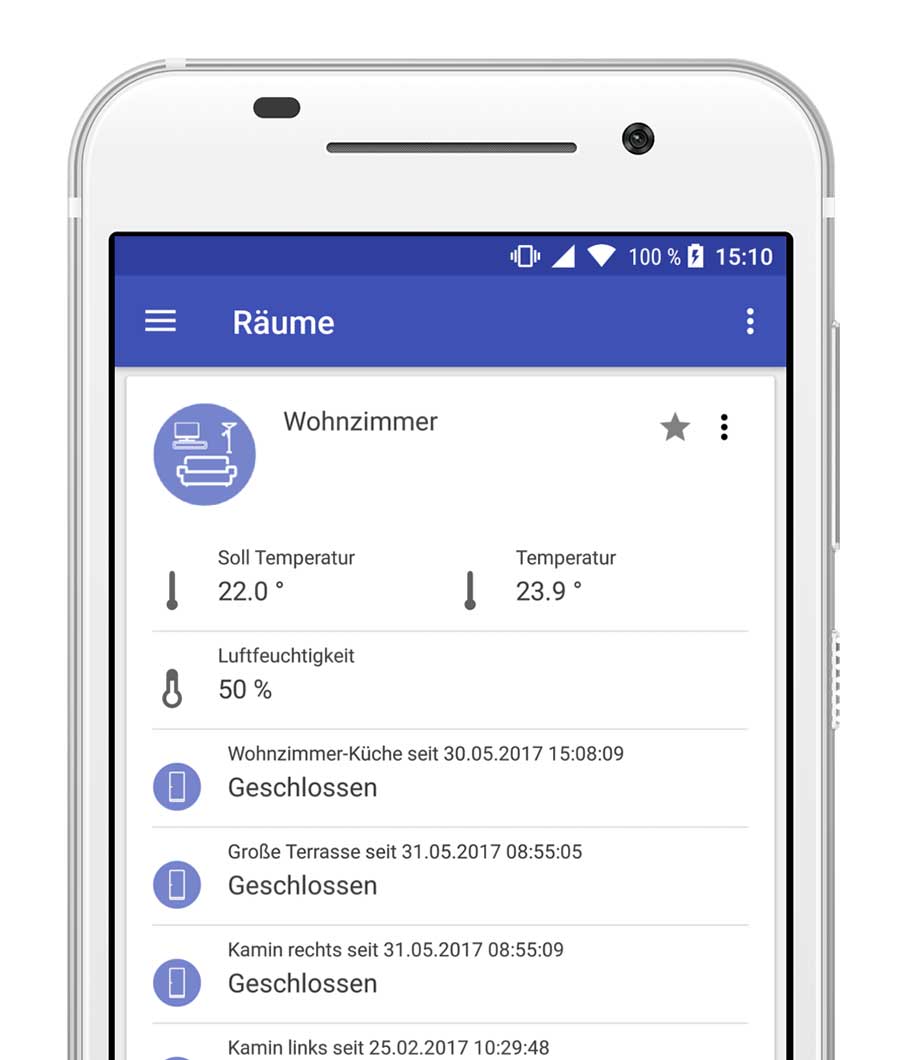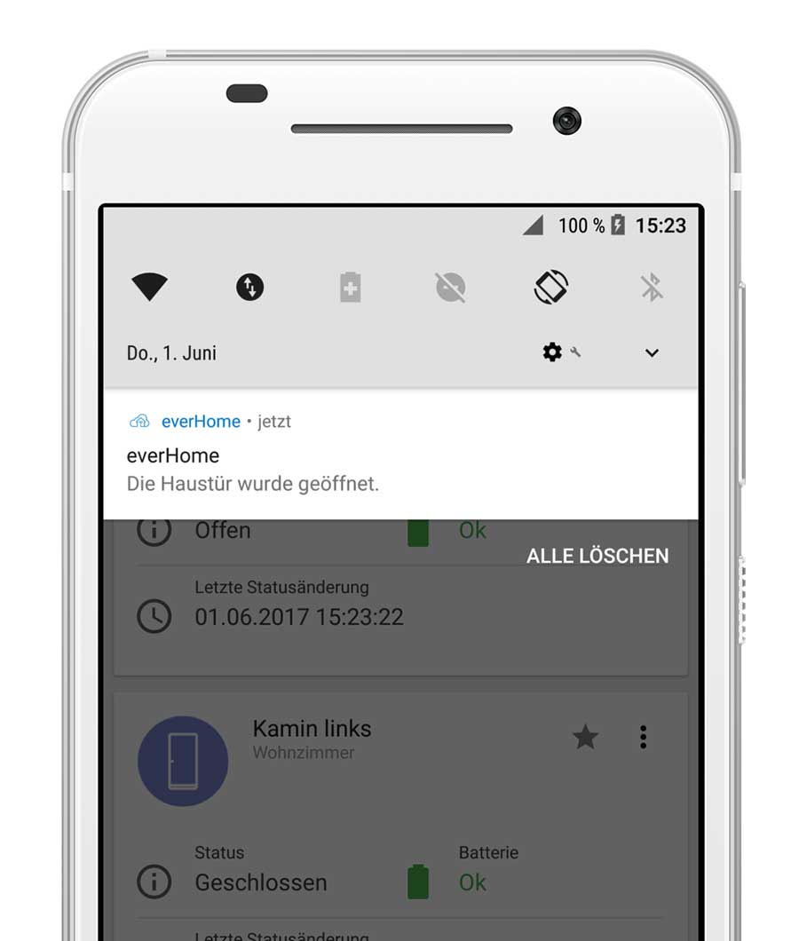 Verschiedenste Sensoren stehen zur Verfügung, um ihr Heim zu überwachen. Die everHome App informiert Sie über Auffälligkeiten, auch wenn Sie nicht zuhause sind.