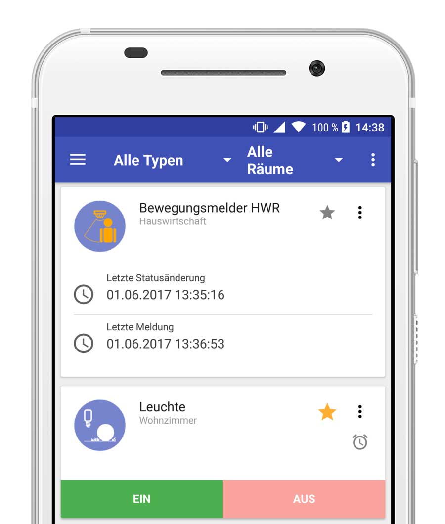 Steuern Sie ihr SmartHome zuhause und von unterwegs über die everHome App. Aktivieren Sie Szenen. Passen Sie die Wohlfühltemperatur eines Raumes an. Schauen Sie, ob in ihrem Heim alles in Ordnung ist. Lassen Sie sich über Zwischenfälle in der Wohnung benachrichtigen. Unterwegs haben Sie Ihr SmartPhone immer dabei und Ihr Heim immer im Blick.
