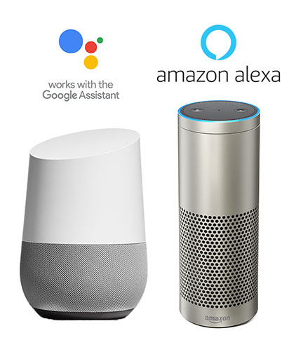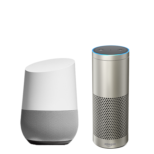 Nutzen Sie Amazon Echo oder Google Home, um mit Alexa oder dem Google Assistant Geräte zu steuern und Szenen zu aktivieren.