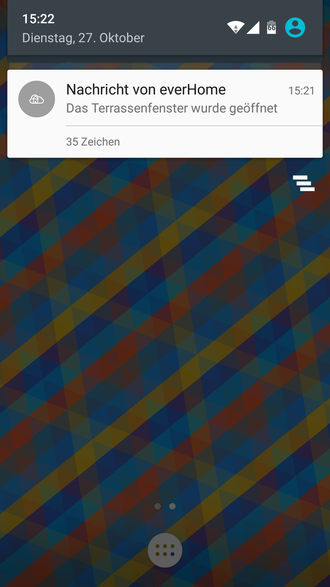 Das neue Widget der Android App wird das Gerät everHome SensorBox 1101 Thermometer mit der aktuellen IST-Temperatur anzeigen. Diese wird auf dem Home Screen laufend aktualisiert.