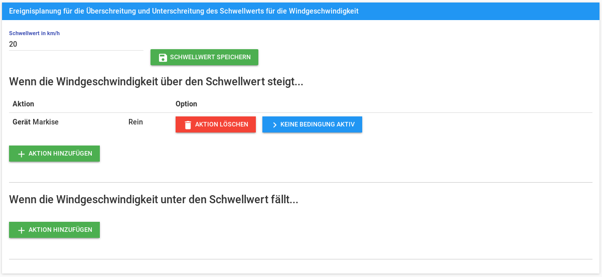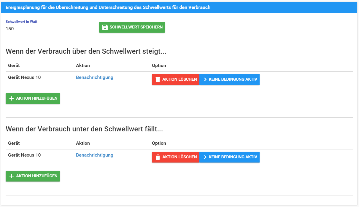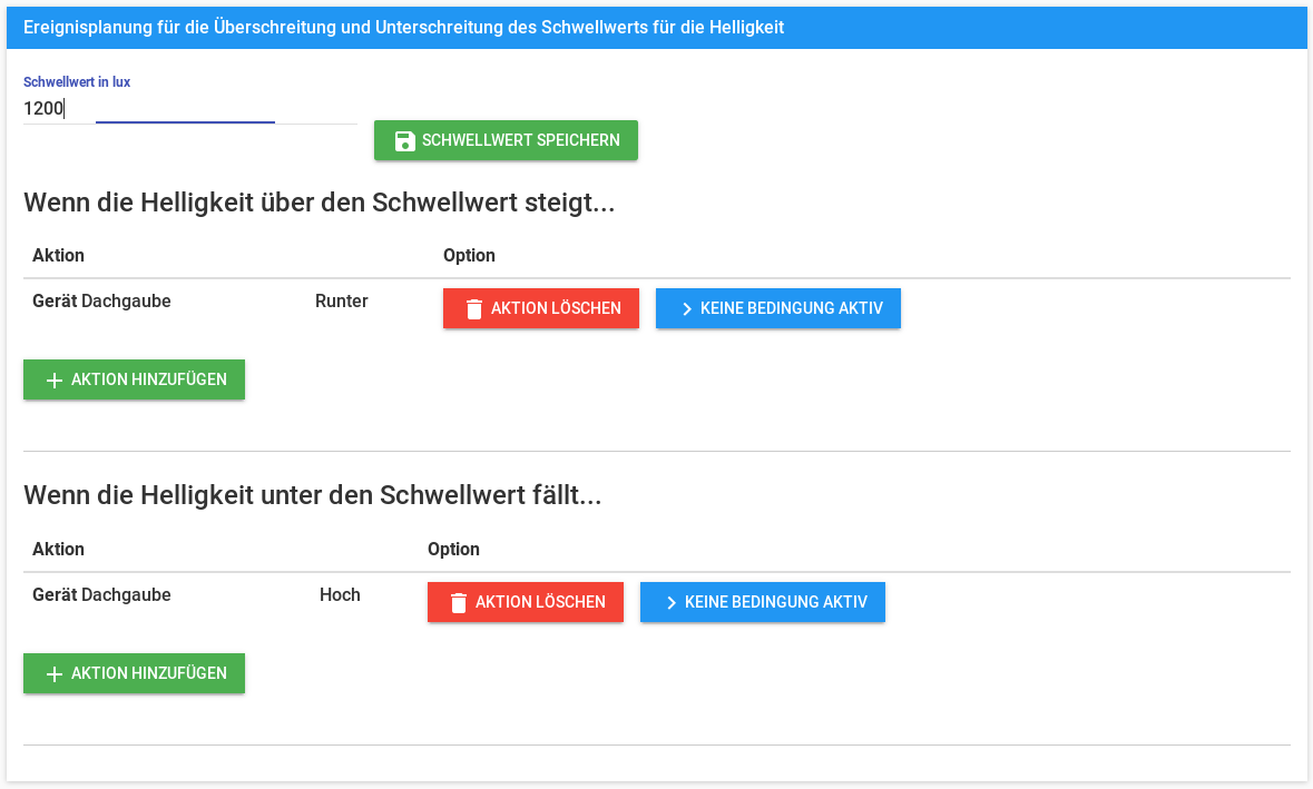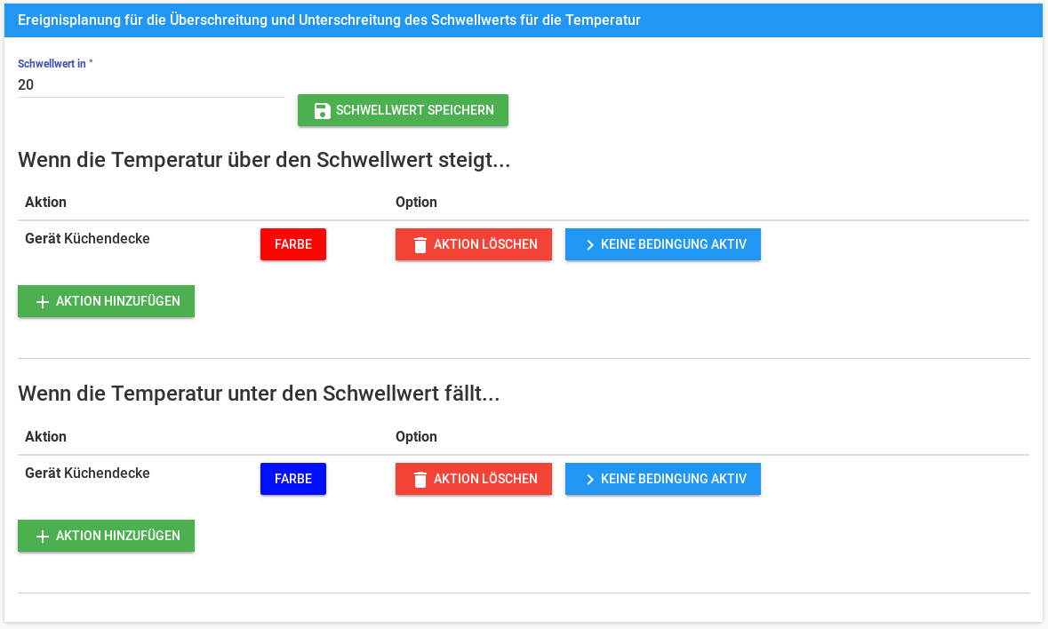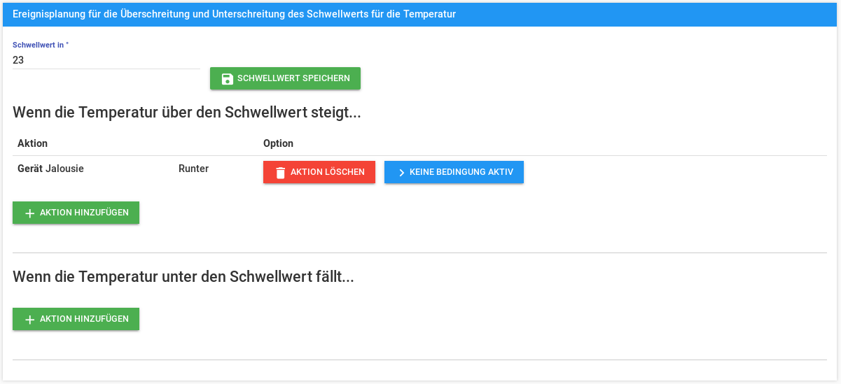 Mehrere Schwellwerte für das Hinterlegen von Reaktionen: Ordnen Sie für einen Sensor mehrere Reaktionen unter Nutzung von verschiedenen Schwellwerten zu.