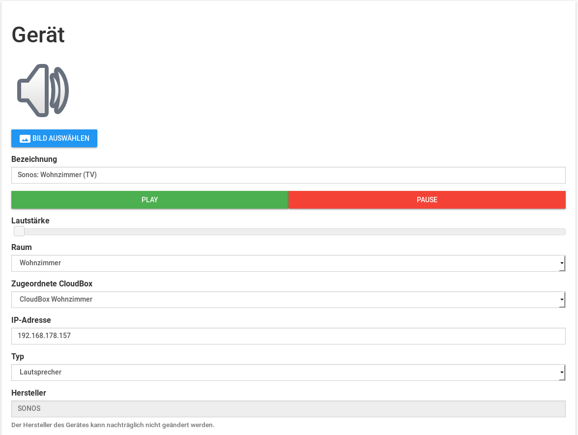 SONOS Zonen mit everHome mit der Aktion PLAY und STOPP schalten