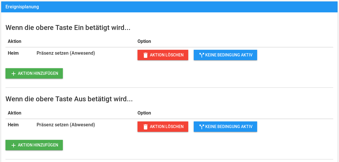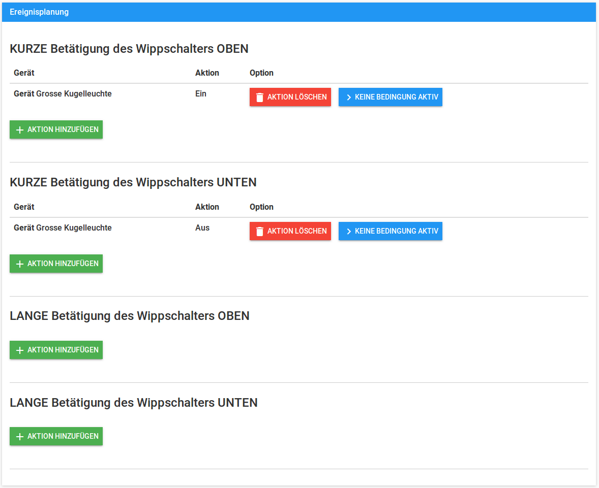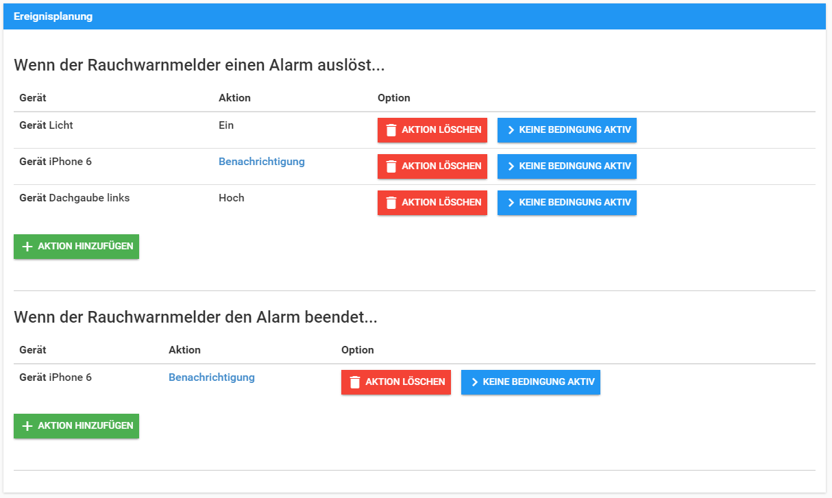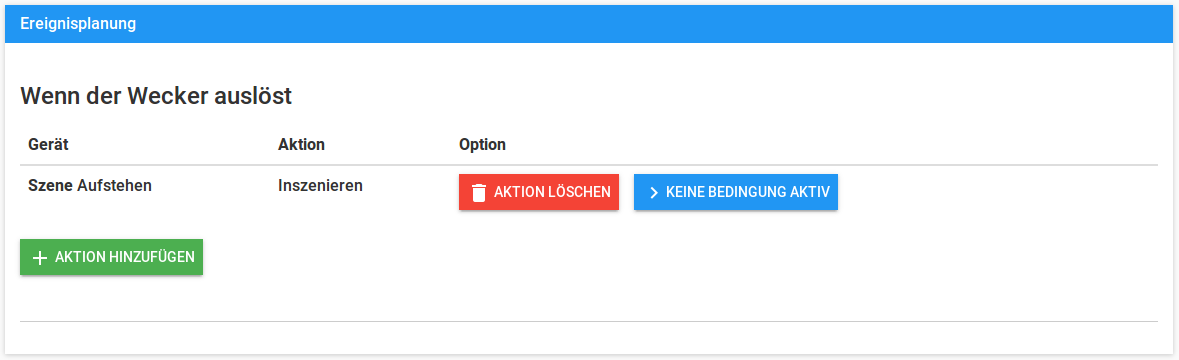 Mehrere Folge-Aktionen zu einer Aktion für ein Gerät in einer Szene durch Verwendung der Wartezeit in Sekunden