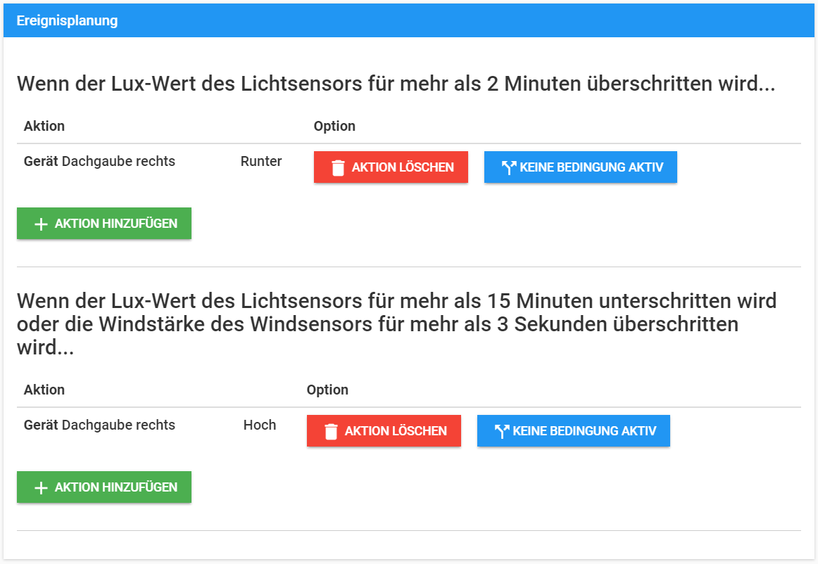 Werden in einer Szene mehrere Aktionen für Geräte geplant, so kann man nun diese verschiedenen Aktionen einer Szene umsortieren.