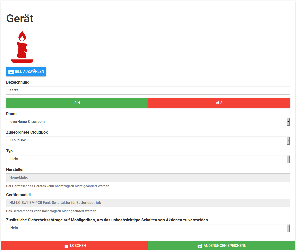Neben den Gerätetypen Licht, Dimmer, Jalousie, Sonnenmarkise haben wir den Typ Taster mit der Aktion IMPULS in everHome integriert