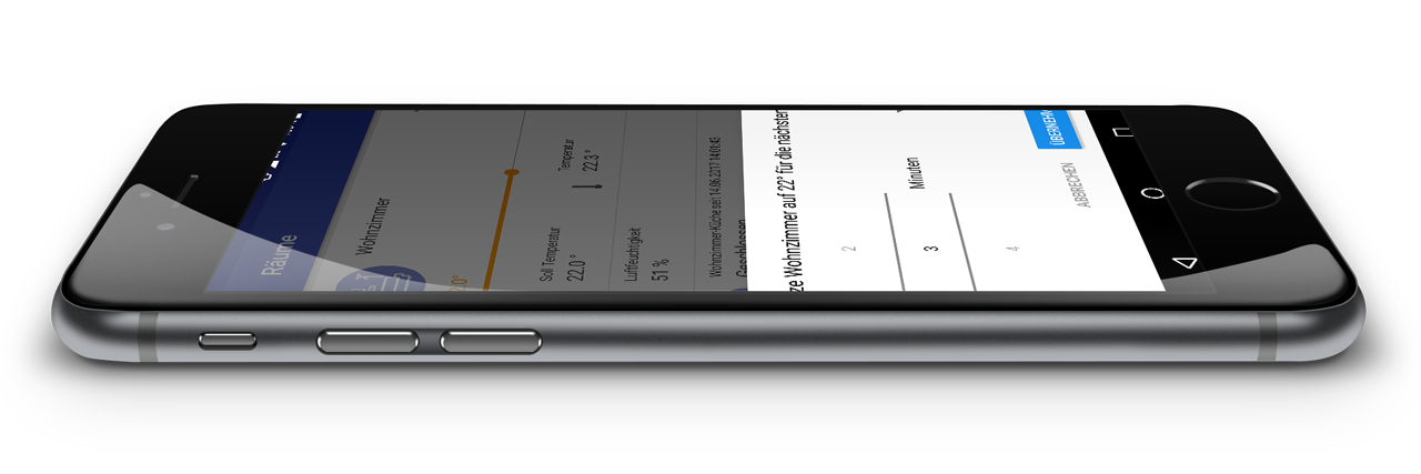 Mit SmartPhone, Tablet oder Alexa Sprachsteuerung kann die hinterlegte Temperaturplanung für einen Raum für eine bestimmte Zeitdauer verändert werden.