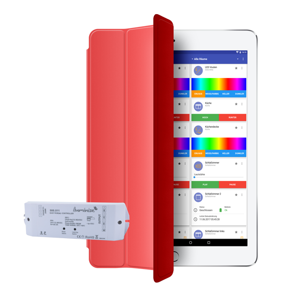 Steuern Sie ihre RGB(W)(S) Stripes smart mit einem Funk-RGB(W)(S) Controller. Planen Sie passende Lichtstimmungen.