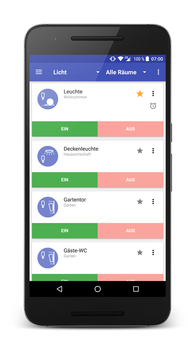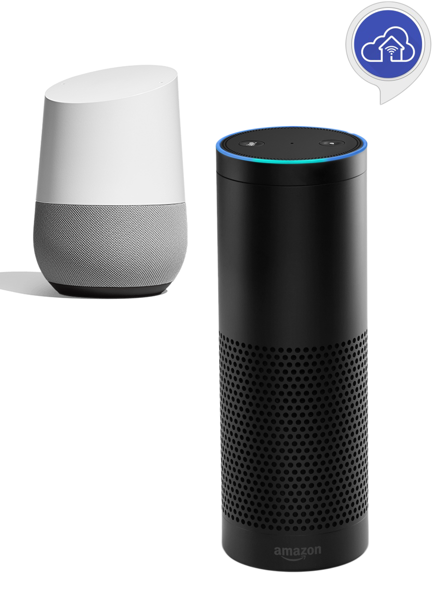 Alle Geräte in everHome lassen sich durch Amazon Alexa und Google Home mit Sprachbefehlen ein- und ausschalten: "Alexa, schalte das Licht ein" "Ok Google, schalte das Licht ein"