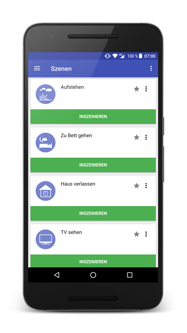 Alle Szenen in everHome lassen sich durch Amazon Alexa und Google Home mit Sprachbefehlen aktivieren: "Alexa, aktiviere TV sehen". "Ok Google, aktiviere TV sehen".